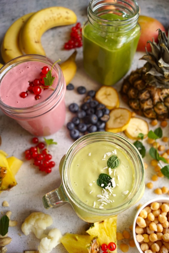 Erilaiset smoothiet, eli hedelmistä, marjoista, vihanneksista ja muista aineksista pyöräytetyt juomat, ovat terveellisten välipalojen aatelia. Nämä ihanat juomat surautat hetkessä valmiiksi. Lisäksi näiden herkkujen joukkoon uppoaa vaikka ja mitä, joten niistä saa helposti ravitsevia. Smoothien valmistamisessa on vain mielikuvitus rajana!