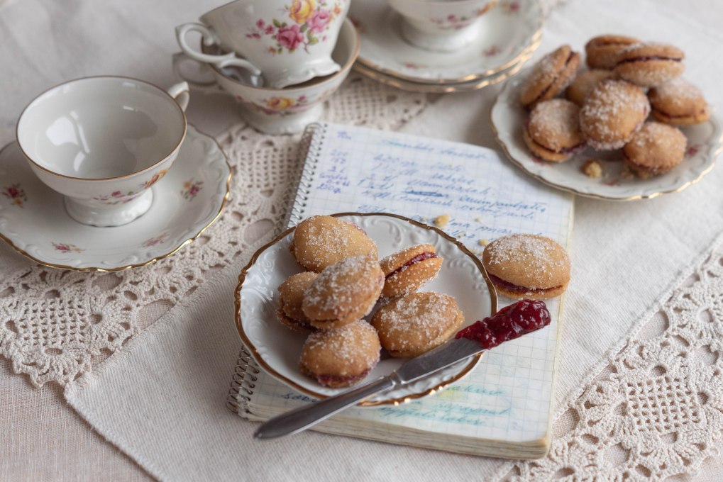 - Ota pelti uunista ja ripota pinnalle sokeria. Aseta toinen leivinpaperi levyn päälle ja toinen uuninpelti kanneksi. Käännä koko komeus ylösalaisin ja poista nyt päällimmäinen uuninpelti ja leivinpaperi. Anna jäähtyä kädenlämpöiseksi.