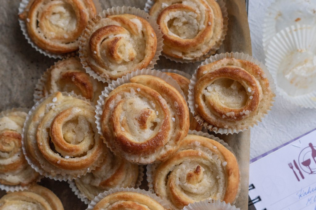 - Rullaa torttulevy tiiviiksi rullaksi leivinpaperin sisään. Jätä saumapuoli tortturullan alle. Siirrä lopuksi jääkaappiin tekeytymään pariksi tunniksi tai seuraavaan päivään.