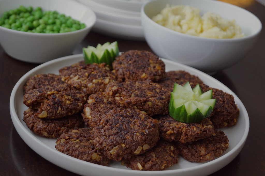 Olen tykästynyt Anamman meheviin soijapyöryköihin, joita nappaan usein matkaan marketin pakastealtaasta. Viimeaikoina olen yrittänyt löytää sopivaa reseptiä samantyylisiin, ehkä hieman perinteisempiin pyöryköihin/pihveihin. Kokeilujen aikana olen seilannut eteen ja taakse, mutta tämä resepti tuntuu nyt oikein hyvältä. Gluteiinijauhojen (näitä myy ekokaupat ja esimerkiksi vegekauppa, nykyään myös isommat marketit) ansiosta pihvit pysyvät hyvin kasassa ja niissä on myös hiven sitkoa. Meheviä, perinteisiä, ihania, melko helposti valmistuvia ja edullisia pihvejä – olkaa hyvä! Annos on riittoisa, koska ylijääneet pihvit maistuvat ihanilta, jollei jopa paremmilta kylminä.