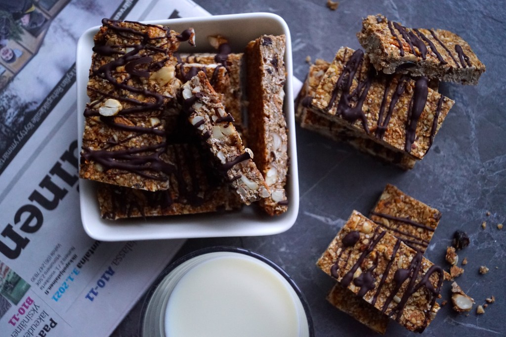 - Mittaa kuivat aineet kulhoon ja sekoita. Rouhi suklaa ja siirrä sivuun odottamaan.