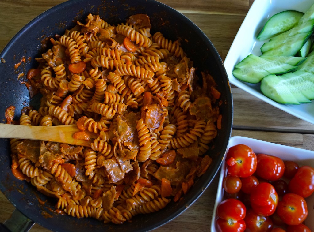 Tämä keitto lämmittää ihanasti. Ruokaisuutta keitto saa perunasta sekä pastasta ja proteiinia tofusta. Kuutioidun savutofun voi lisätä keittoon sellaisenaan, mutta voit halutessasi paistaa siihen ensin maukkaan paistopinnan ja lisätä tofun annokseen vasta lautasella.